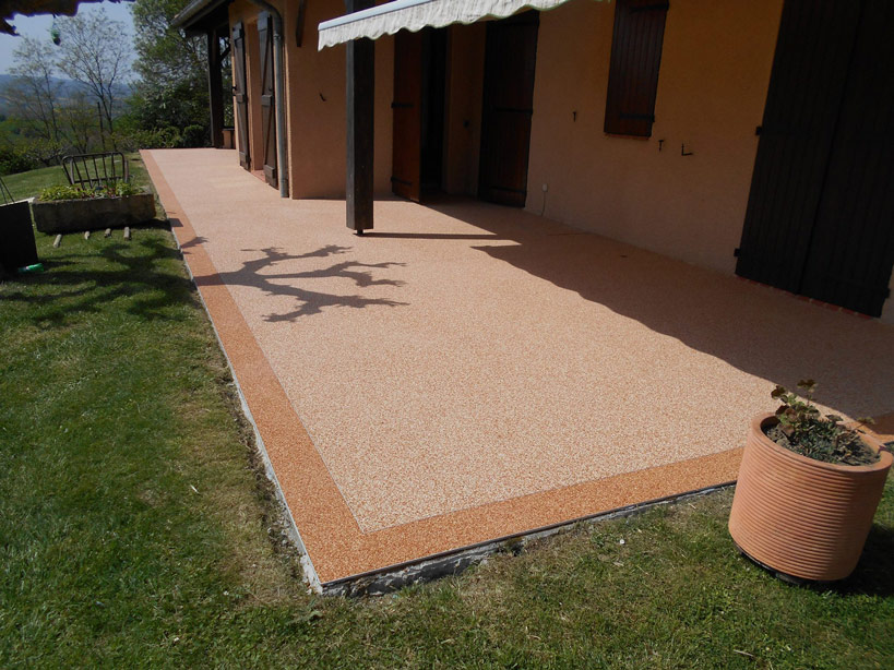 Une ancienne terrasse en carrelage rénovée avec du résineo